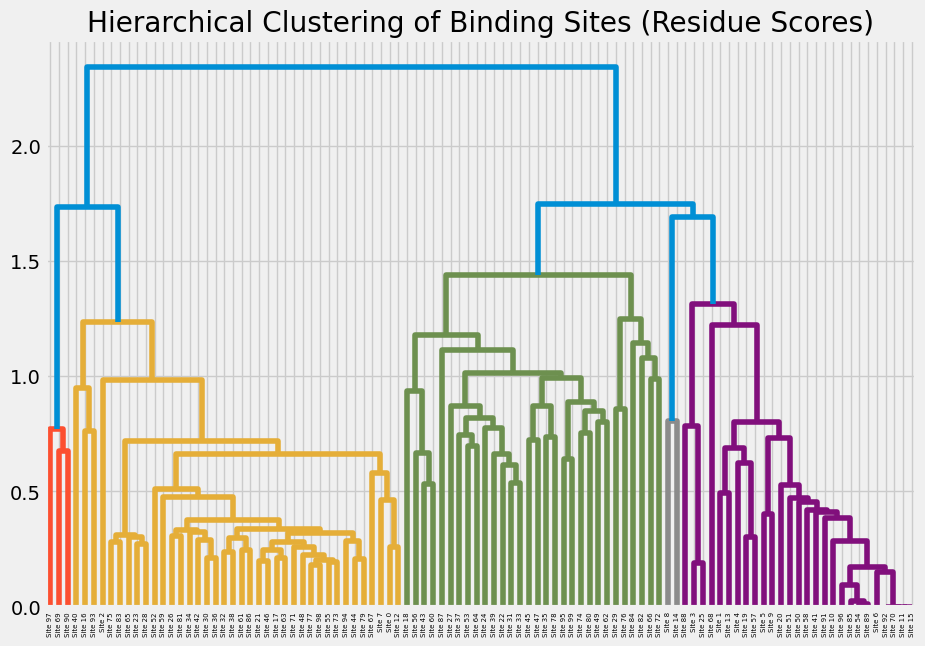 - Mapping back to binding sites: After clustering, the key was mapping each binding site back to its residues/atoms to interpret what the clusters actually represent.